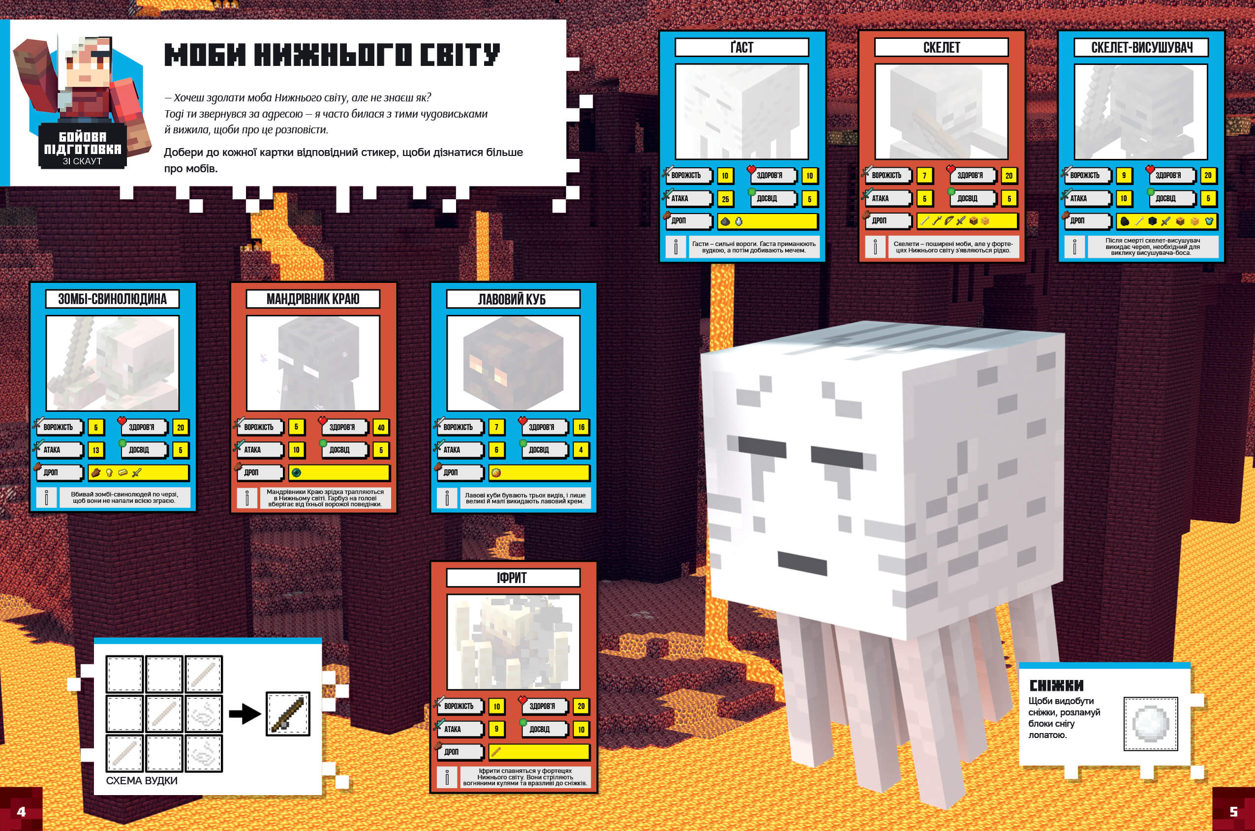 Стикербук має понад 500 крутих наліпок, які знадобляться дитині для виконання завдань. Усередині на маленького читача чекають сторінки з пропущеними фрагментами. Дібрав потрібні наліпки, він продовжить історію та дізнається все необхідне про Нижній світ і Край.