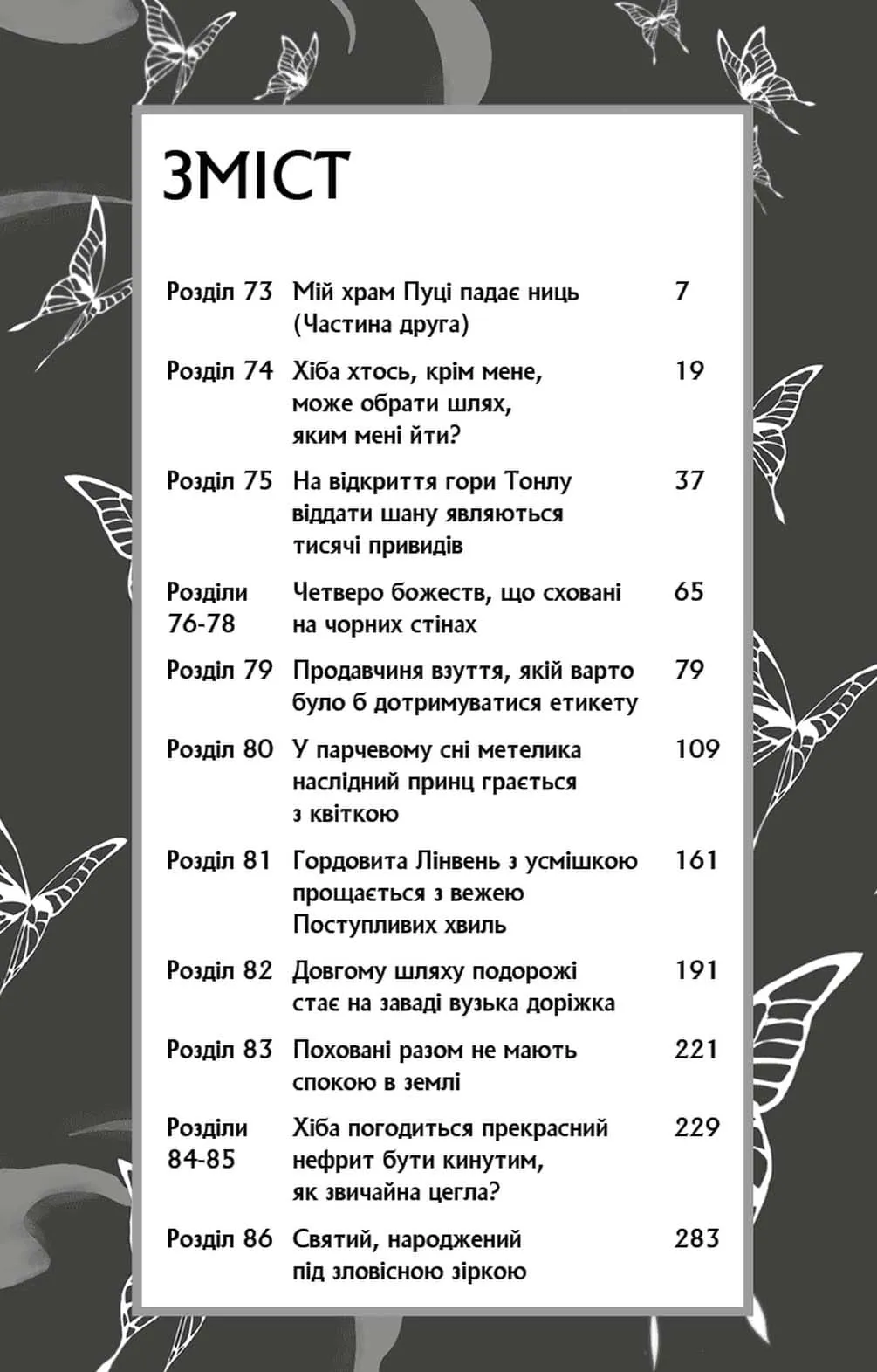 Благословення Небесного Урядника. Том 5 — це кульмінаційна точка епічної подорожі від Мосян Тонсьов, де ставки піднімаються до небес, а минуле починає наздоганяти героїв. Небесна Столиця здригається від зради, а проклята гора Тонлу знову скликає тисячі привидів для кривавого переродження. Сє Лянь та Хва Чен опиняються в епіцентрі подій, де кожен крок по руїнах забутого королівства Вуйон наближає їх до розгадки трагедій, що змінили долю світу.