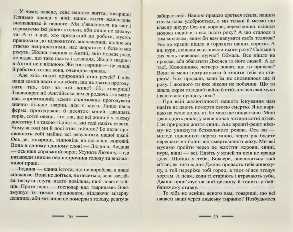 «Колгосп тварин» - твір гострої соціально-побутової сатири. Автор мав на меті показати суспільству справжнє обличчя Радянського Союзу. В романі алегорично відображено події під час становлення та існування епохи Сталінізму перед Другою світовою війною. Орвелл, будучи за переконаннями соціал-демократом, та членом Незалежної лейбористської партії, критично ставився до Йосипа Сталіна та до керованої з Москви політики комуністичних партій після спостереження за роботою НКВС під час громадянської війни в Іспанії.