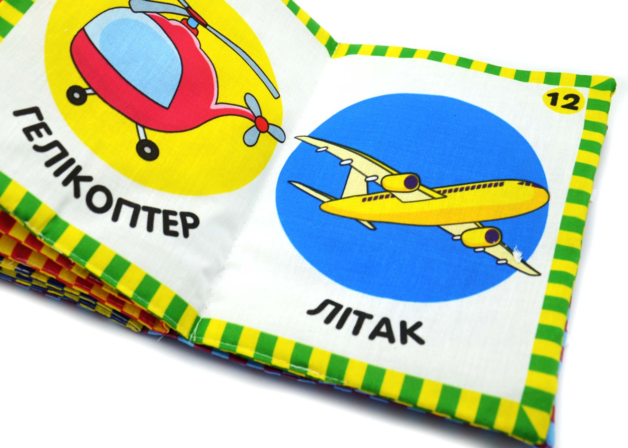 Ця м’яка книжка ідеально підходить як для домашніх занять, так і для мандрівок. Діти можуть вивчати назви машин та інші види транспорту, граючись і перегортаючи сторінки.