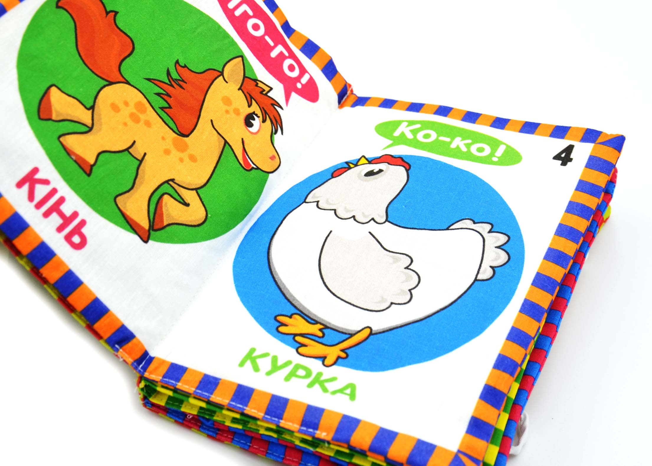 Видана з урахуванням вікових особливостей дітей від 0 до 3 років, ця книжечка виготовлена з міцного нетоксичного текстилю. Приємна на дотик, з барвистими ілюстраціями — вона абсолютно безпечна.