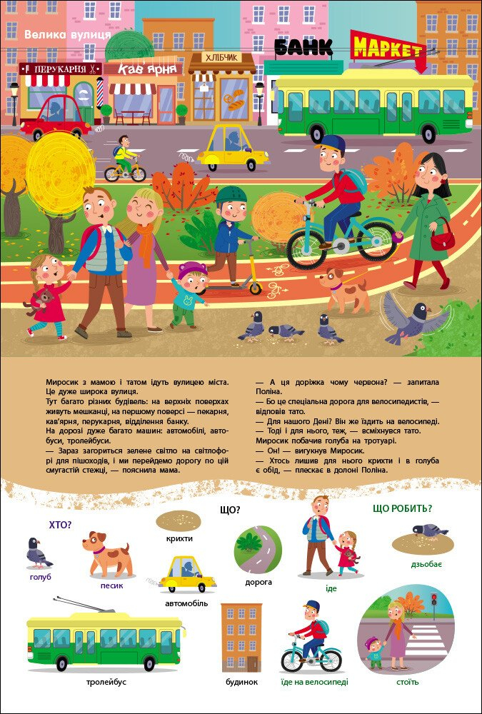 - Якісний візуал: чіткі та привабливі ілюстрації допомагають малюкові правильно ідентифікувати предмети та дії.