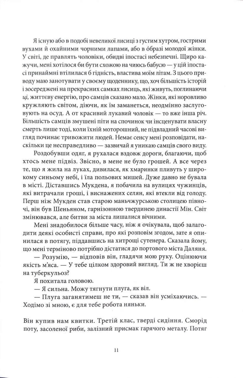 Жінка-лисиця — це новий шедевр від малайзійської письменниці Янши Чу, авторки бестселера «Нічний тигр». Події розгортаються у 1908 році в засніженій Маньчжурії, на тлі занепаду династії Цінь. Сюжет починається з загадкової смерті куртизанки, знайденої на порозі будинку. За справу береться детектив Бао, який має рідкісний дар — він миттєво розпізнає брехню. Пошуки ідентичності померлої ведуть його у світ, де межа між людським та надприродним майже стерта, а чутки про лисиць-перевертнів виявляються чимось більшим, ніж просто фольклором. Паралельно ми знайомимося з родиною власників аптеки, над якою тяжіє вікове прокляття смерті первістків. Коли в їхньому домі з'являється загадкова служниця Омат, колеса долі починають обертатися в інший бік. Чи зможе кохання подолати прокляття, а правда — розвіяти морок помсти?