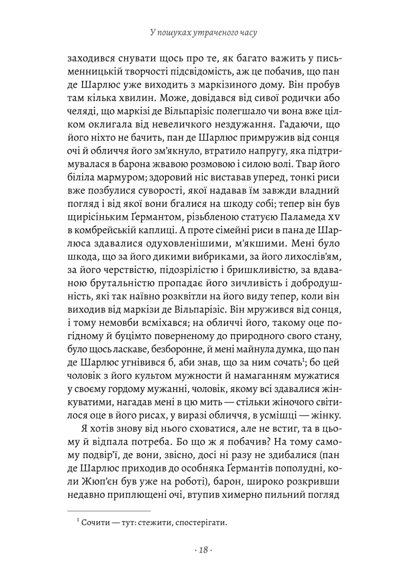 - Переклад Анатоля Перепаді: вишукана українська мова геніального перекладача дозволяє повною мірою насолодитися складним ритмом та багатством прустівського речення.