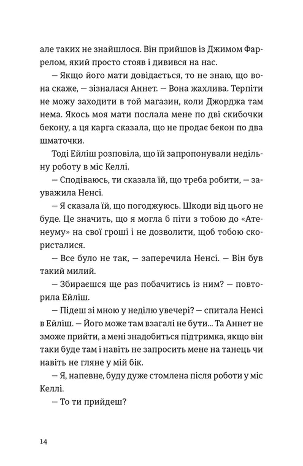 - Атмосфера епохи: деталізовані описи побуту 50-х років, від танцювальних вечорів у Брукліні до затишних кухонь Ірландії, створюють ефект повної присутності.