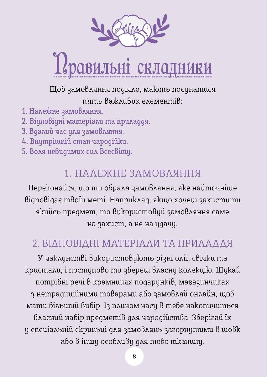 - Практичні замовляння: перевірені способи залучити удачу, гармонізувати атмосферу вдома, зміцнити дружбу та знайти справжнє кохання.