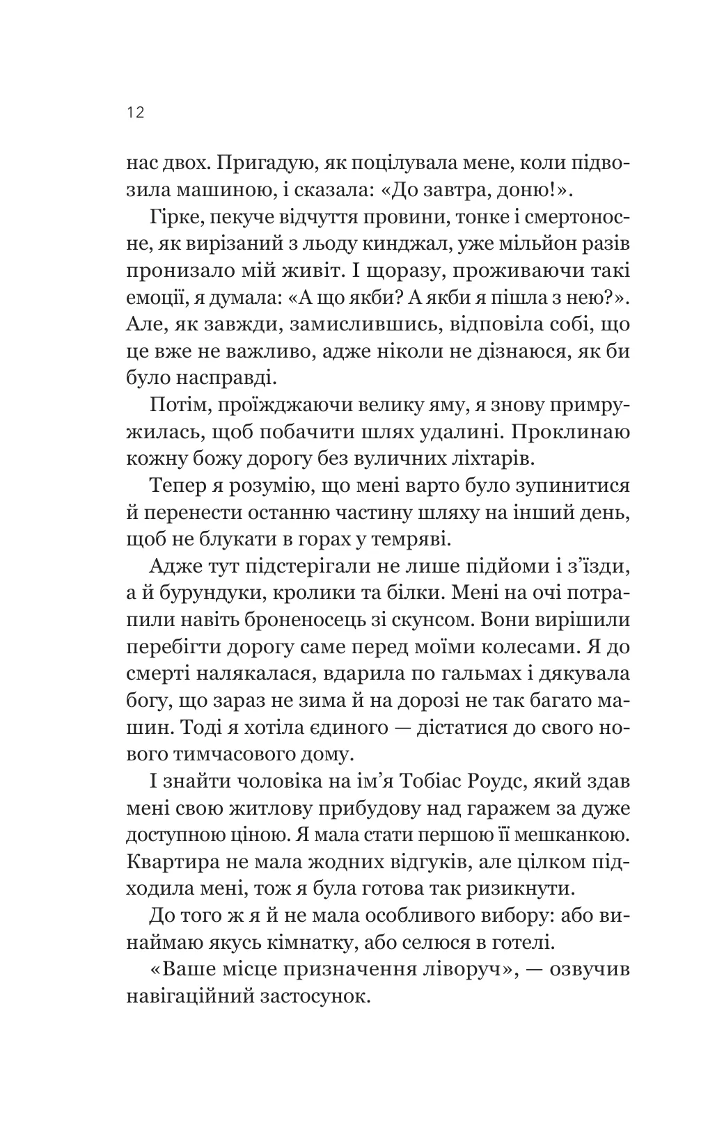 Але разом із затишною кімнатою над гаражем у її житті з'являються двоє: мовчазний, непробивний і неймовірно впертий Тобіас Роудс — власник будинку, і його син-підліток, який бачить у ній те, чого вона сама давно не помічала.