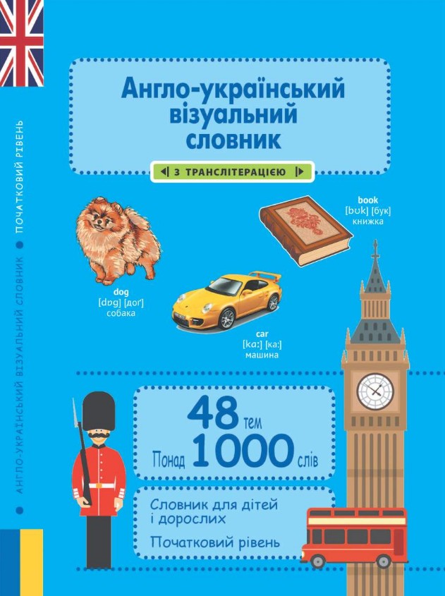 Англо-український візуальний словник містить понад 1000 слів і словосполучень із 48 лексичних тем. Для кращого засвоєння мовного матеріалу пропоновані слова і сполучення слів проілюстровані малюнками. Лексичний матеріал підібрано відповідно до чинних програм з іноземних мов Нової української школи. Правила читання, транскрипція і транслітерація ( запис вимови англійських слів українськими буквами)значно полегшать вивчення англійської мови.