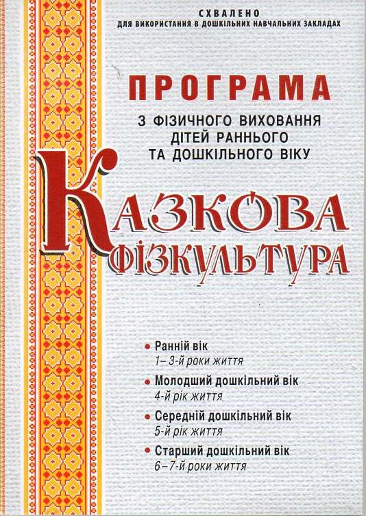 Авторська інноваційна програма “Казкова фізкультура” ґрунтується на принципі гармонійного природного фізичного розвитку дітей, в основі якого лежить еволюційний метод засвоєння дітьми восьми основних рухових режимів: від лежачо-горизонтальних положень (лежачи, на чотирьох, сидячи) до вертикалізованих функціонально-тренувальних (лазіння, біг, стрибки). Крім того, програма передбачає обов'язковий наскрізний ігровий метод вправляння, своєрідну театралізацію рухової діяльності дошкільників: фізкультурна казка при цьому стає основною формою взаємодії педагога з дітьми, які у відповідних сюжетно-рольових проявах всебічно реалізують свій особистісний потенціал. Для педагогічних працівників дошкільних навчальних закладів, батьків.